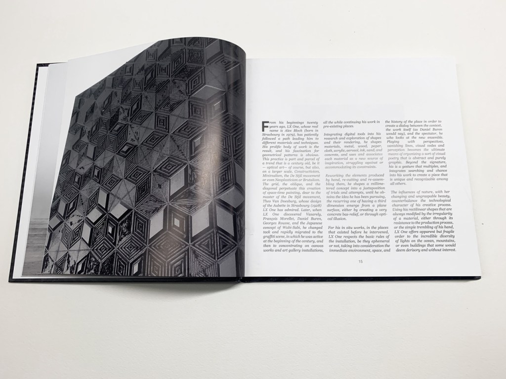 Après XV Classes et différents projets vidéo menés avec sa collaboration, les éditions Collectif Combo publient cette année la première monographie de LX One : Aléa. Photographies de Thomas Lang et Damien Dohmen, préface de Remi Rough, sous la direction d’Erwann Lameignère.