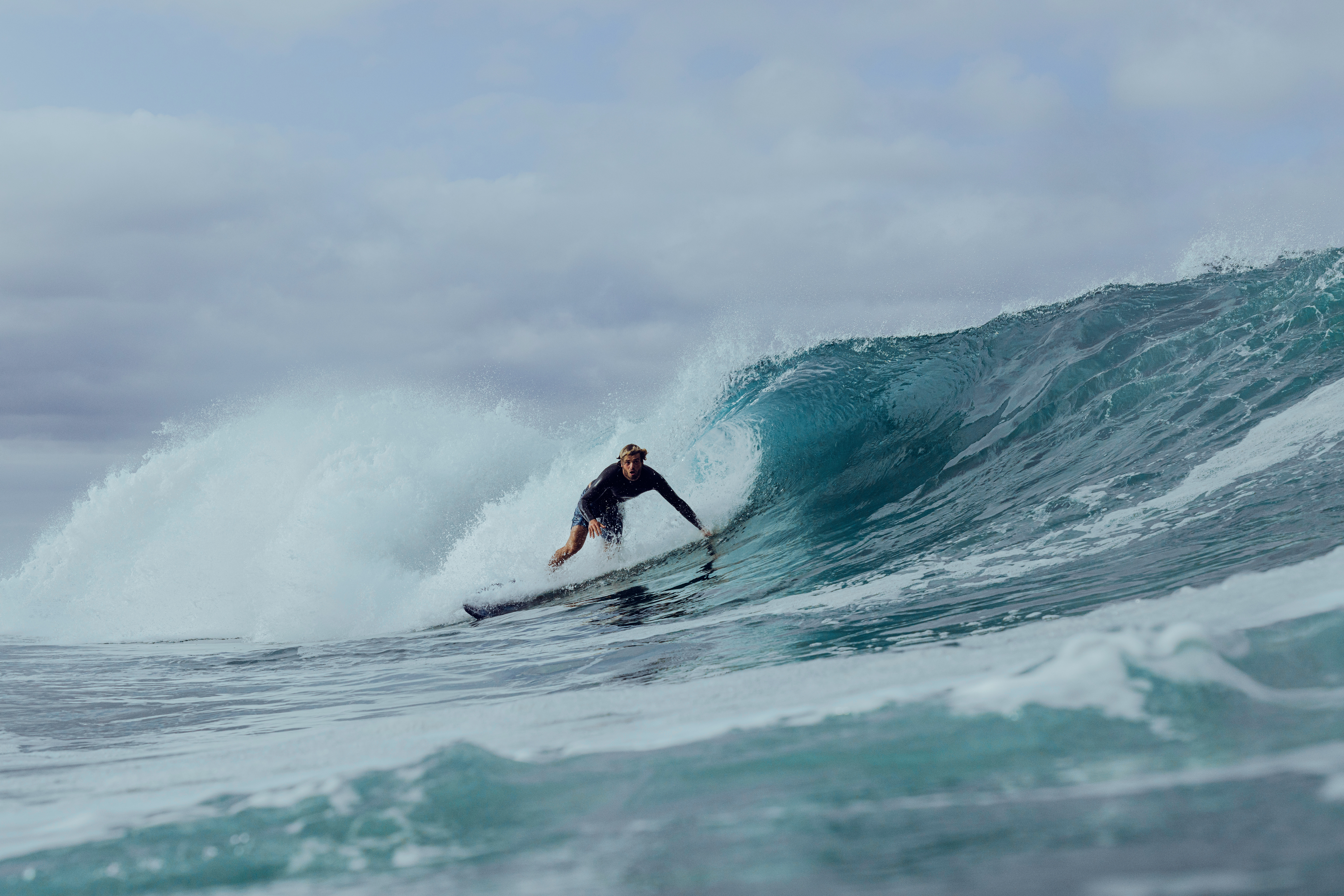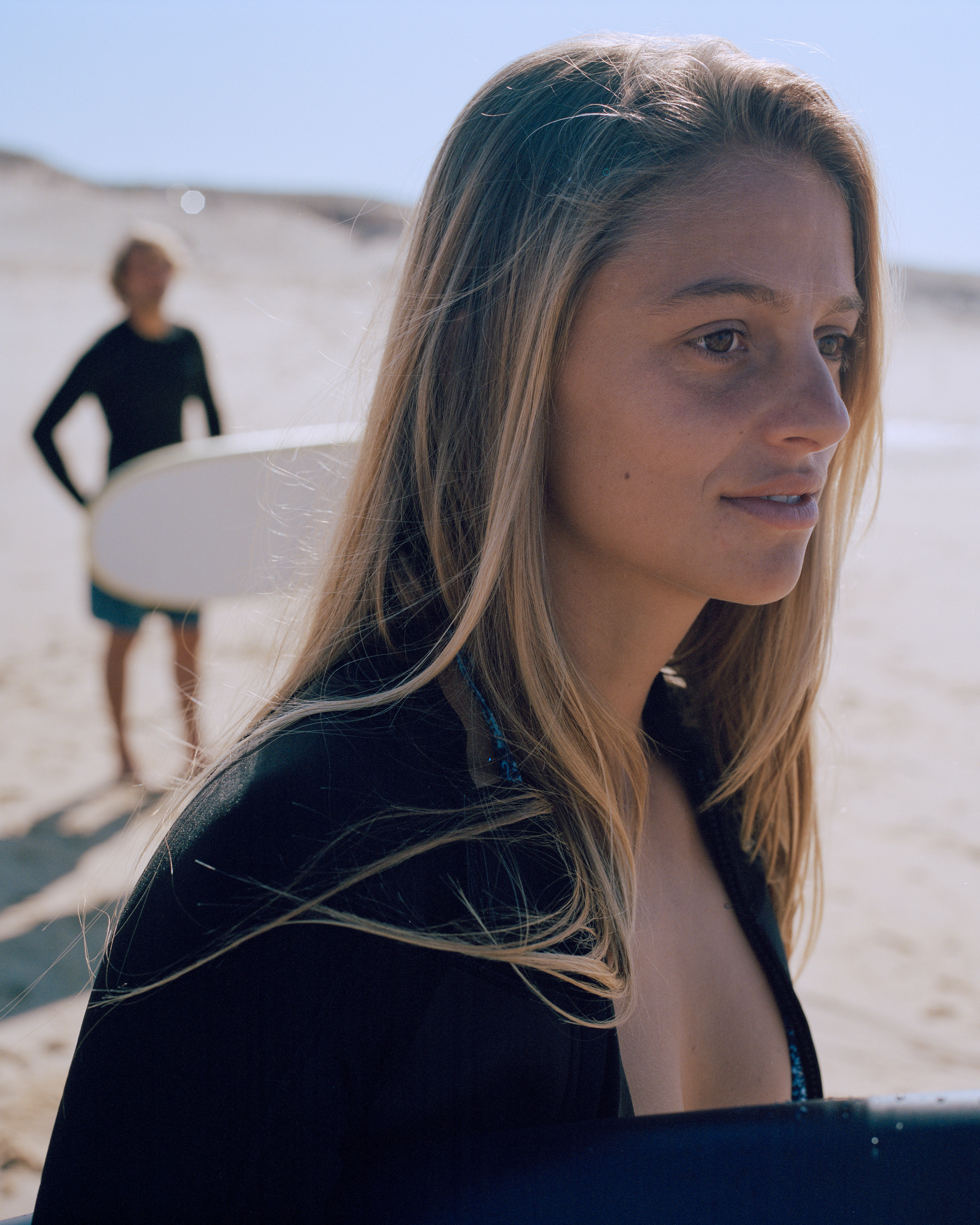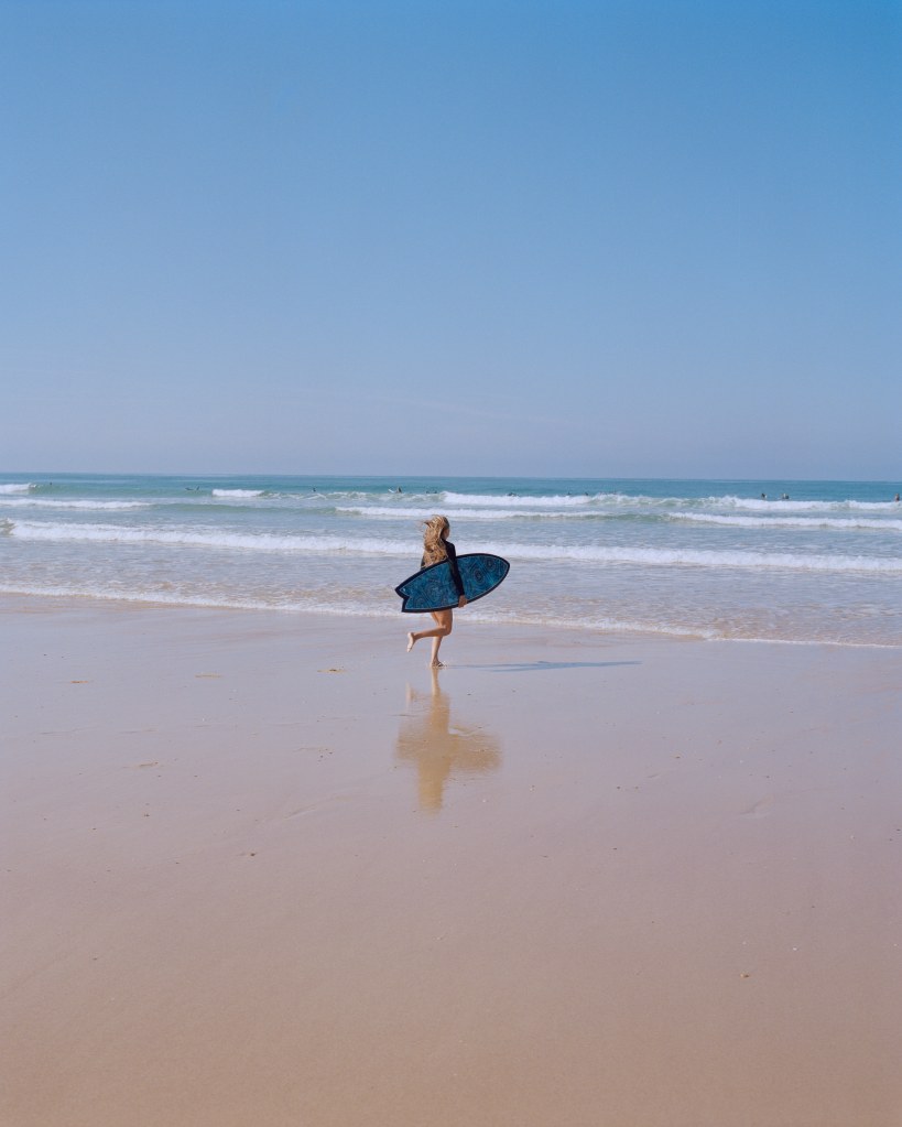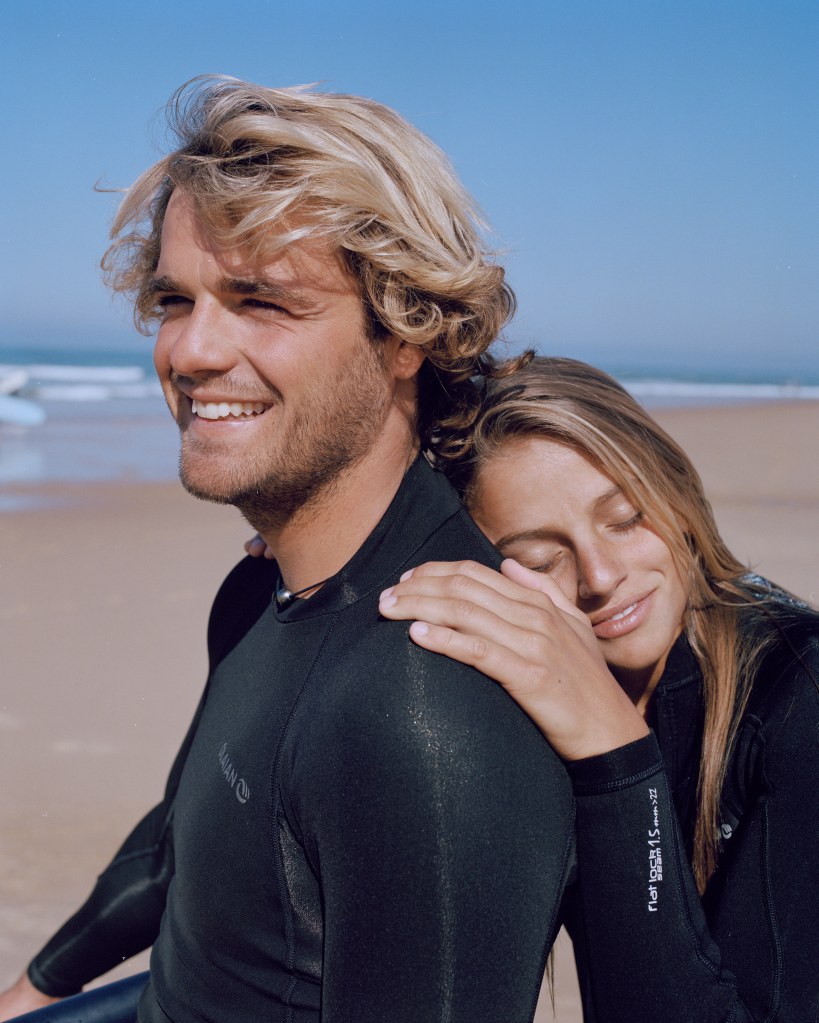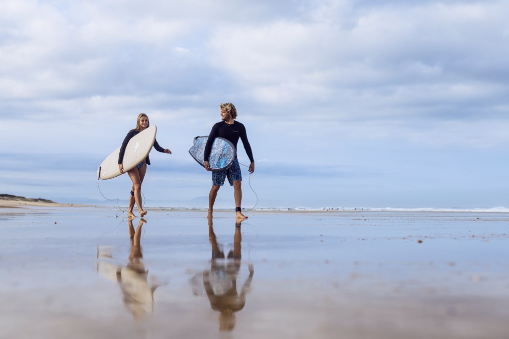 Autour de deux planches de surf (fish en epoxy et longboard en mousse) et deux maillots de bain (homme et femme).
